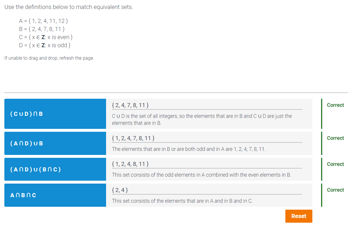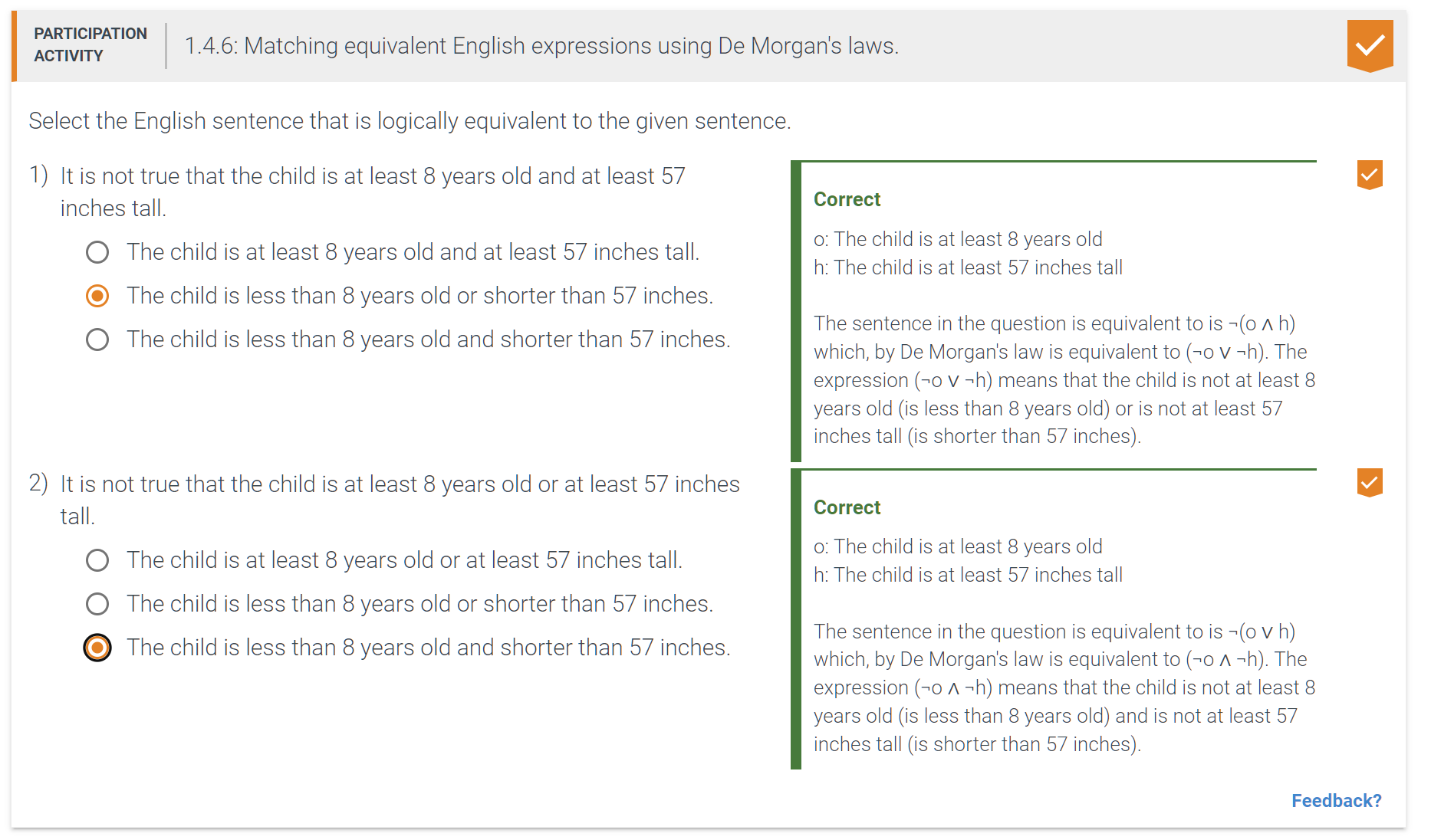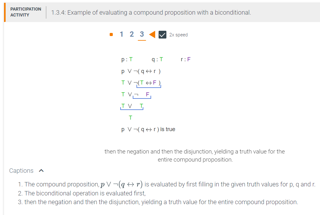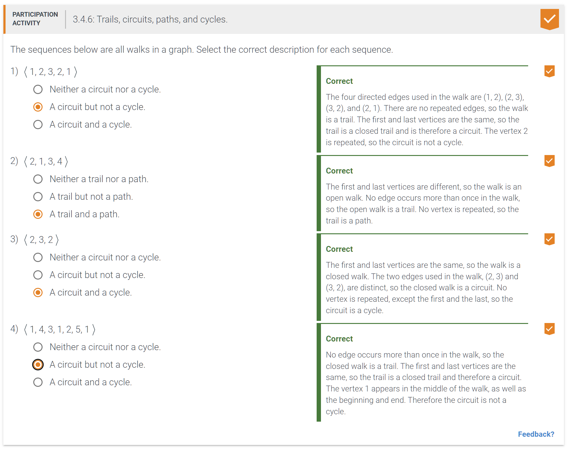 My Discrete Math course assignments were all presented through an online textbook, using Zybooks. We also took three tests, all of them proctored by MonitorEDU. I've included various screenshots of notes and assignments to show an example of what topics were covered.