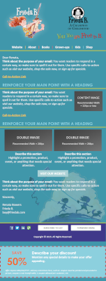 In addition to those resources, you'll see below some examples of email templates I designed when I worked at Constant Contact. Lastly, I've included some links to websites I've both made for clients, and for myself. If anything here looks interesting to you, or you have any questions, feel free to use the Contact page to send me a message or contact me on the social network or community of your choice.